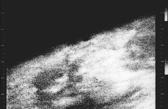 | La première photo de Mars transmise par Mariner 4, le 15 juillet 1965. |
