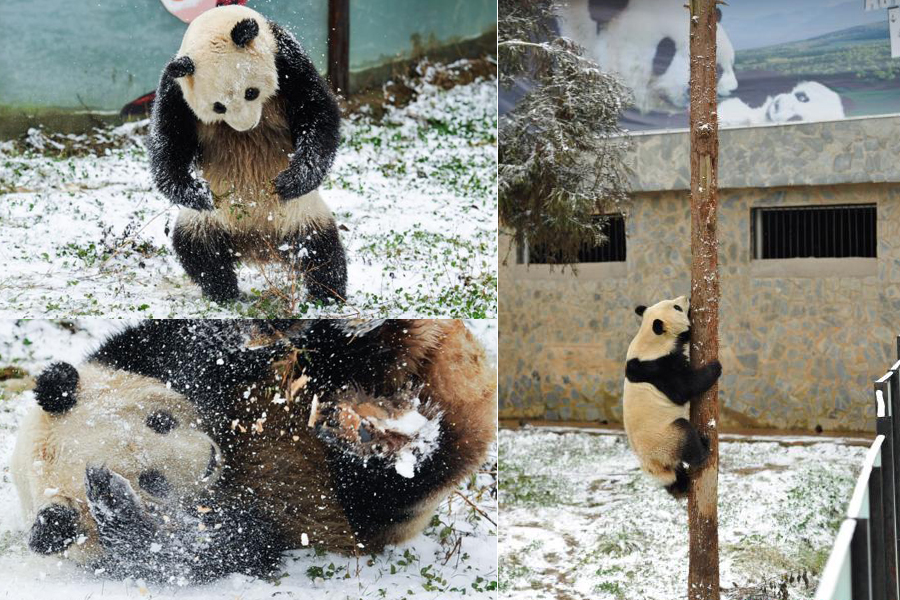 Un panda géant a déboulé sur le terrain et a grimpé dans un arbre dans un parc de Kunming, dans la Province du Yunnan, après que de fortes chutes de neige aient touché la ville le 13 janvier. Le panda semble avoir parfaitement compris que, comme le dit le vieil adage, il faut s'exercer lors de l'hiver le plus froid et de l'été le plus chaud pour devenir un grand ma?tre du Kung Fu.