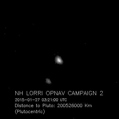 ? Mon père serait ravi de voir réellement la planète qu'il avait découvert, s’il était encore vivant aujourd'hui ?, a déclaré la fille de Clyde Tombaugh, Annette Tombaugh. New Horizons était à plus de 203 millions de km de Pluton quand elle a commencé à prendre des photos. Les nouvelles images, prises par le télescope de reconnaissance à longue portée Imager de New Horizons (LORRI) le 25 janvier et le 27 janvier, sont les premières de l’approche de l'engin spatial du système de Pluton en 2015. Elle se terminera par un survol proche de Pluton et de ses lunes en juillet de cette année.