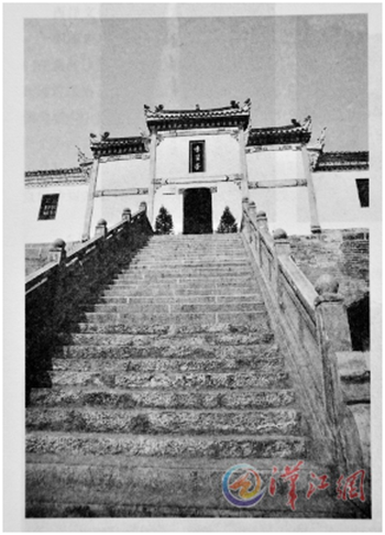 Le ? Mémoire d'enquête sur le patrimoine culturel de Xiangfan ? en fait cette description : ? La Terrasse fait 8 mètres de haut, 30 mètres de long pour ce qu'il en reste, 22,4 mètres de large, la salle avant fait 6 mètres de haut, la salle arrière 8 mètres de haut, avec un toit à bordure arrondie et une gouttière, pour un total de 22,4 mètres de profondeur, une largeur de surface de 9 mètres, à quatre colonnes et trois travées, douze angles d'aile, et la base des murs pignons et ceux de l'enceinte sont au même niveau ?.