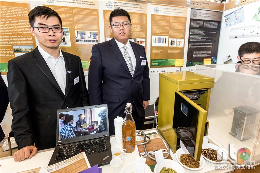 Le 15 avril, le 43ème Salon International des Inventions de Genève a lieu à Genève, en Suisse. Sur la photo: Ahmad A. Majjan de Dubai avec son système pour entra?ner les lévriers de course.(Photo: ntp/MAXPPP/PHOTOPQR/LE DAUPHINE/Grégory YETCHMENIZA)