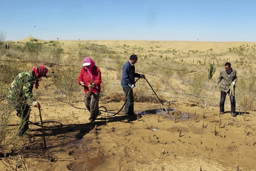 Il s'est rendu compte que cette Ceinture économique de la Route de la Soie traversait en grande partie le Centre-Ouest de la Chine. Or, le tiers de cette région est désertique. Le taux de désertification au Xinjiang atteint par exemple 64,34 %, celui du Ning-xia 55,8 %, celui de la Mongolie intérieure 52,2 %, celui du Gansu 45,12 % et celui du Qinghai 26,7 %. Le Moyen-Orient et l'Asie centrale, également situés sur la Route, sont aussi touchés par le phénomène. Au Kazakhstan notamment, 66 % des sols sont en train de se détériorer et ce sont plus de 1 800 milliards d'hectares de terres qui sont en train de se transformer en désert, soit la plus vaste zone menacée en Asie centrale. La désertification des sols est un des principaux obstacles au développement de ces régions.
