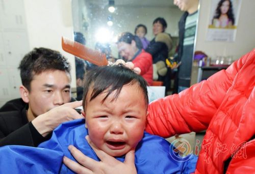 Le 21 mars de cette année était le 2e jour du 2e mois lunaire ; ce jour-là deux activités traditionnelles ont lieu à Xiangyang, celles du ? rasage de la tête du dragon ? et celle de la ? dégustation d’oreilles de dragon ? (des raviolis). Dans le District de Baokang de Xiangyang, dans un salon de coiffure, un enfant a subi ce fameux ? rasage de la tête du dragon ?. Si le jeune gar?on a eu des sentiments pour le moins mitigés, les gens qui assistaient à la scène regardaient eux en riant.