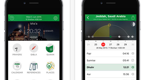 Muslim Pro met à disposition une récitation audio du Coran, des listes de restaurants halal et de mosquées à proximité de sa position géographique, et indique la direction de La Mecque, alors qu'Athan Pro pour Muslim les propose également à travers un "tableau de bord", complété par la possibilité d'envoyer des cartes de voeux islamiques pour souhaiter un bon ramadan à son entourage. Pour ceux qui utilisent Twitter, Al Kanz a développé un compte qui donne les horaires en réponse automatique.