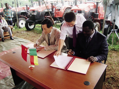 En 2011, Geng Wenbing, ambassadeur de Chine au Bénin, et Katè Saba?, ministre béninois de l'Agriculture, ont signé un accord de transfert de marchines agricoles.