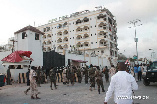 Un kamikaze a fait exploser sa voiture à l'entrée de l'h?tel, faisant 15 morts, dont la majorité sont des civils, a indiqué à Xinhua Abdulle Mohamed, officier de police de Mogadiscio.