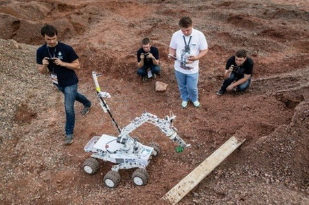 Organisé par la Mars Society Polska, branche locale d'une association internationale préparant la conquête de Mars, le concours européen des robots explorateurs a eu lieu à Checiny, et a mis les robots à rude épreuve sur un terrain sableux et humide difficile : les robots, commandés à distance par des opérateurs qui ne voient le terrain que sur l'écran de leurs ordinateurs, ont d? affronter quatre épreuves sur un terrain vague transformé en ersatz de planète Mars grace à 750 tonnes de terre -rouge bien entendu- extraites d'une mine voisine. Les robots, modulables, se dépla?ant sur quatre, six ou huit roues, pesant jusqu'à 50 kilogrammes, devaient aider les astronautes et servir de base pour différents modules d'exploration scientifique. Tout ce qu'il y a de plus sérieux, donc les robots, dont certains ont demandé plus de 3000 heures de travail pour leur construction, ont d?, comme l'a expliqué Arkadiusz Klos, un membre du jury observant le robot polonais Orion, construit par les étudiants de l'Université technologique de Lublin ? outre prélever des échantillons du sol, faire étalage de leurs capacités à manipuler les interrupteurs d'un réacteur et y mesurer la tension, transporter des outils. Ils ont également appris à effectuer un parcours spécial uniquement à l'aide des coordonnées GPS ?.