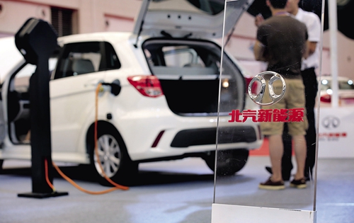 Une voiture électrique présentée à la ? fête des achats de voitures ? à Guangzhou en ao?t.
