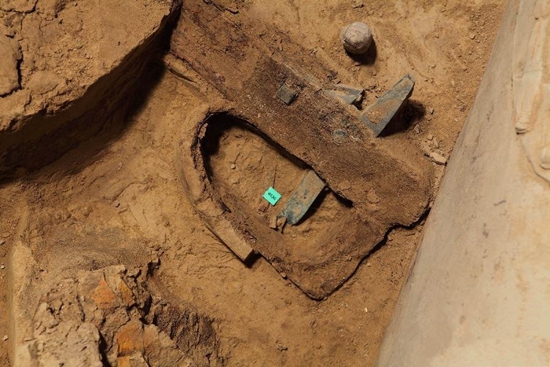 L'arbalète la plus complète découverte dans la fouille numéro 1 du Musée des guerriers et chevaux en terre cuite de l'empereur Shihuangdi des Qin. [Photo/Chinanews.com]