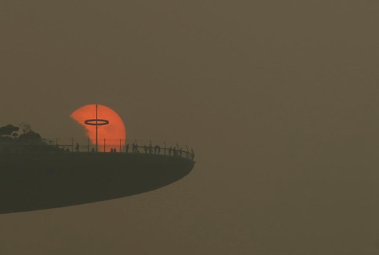 Coucher de soleil depuis l''observatoire de l'h?tel Marina Bay Sands à Singapour, le 5 octobre 2015. L'agriculture sur br?lis dans le pays voisin l'Indonésie, fait que Singapour est recouvert d'une brume étouffante. [Photo/Agences]