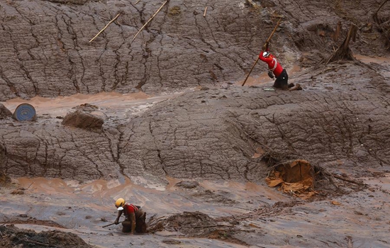 Les secours à la recherche de victimes dans le district de Bento Rodrigues recouvert de boue après l'éclatement d'un barrage, propriété de Vale SA et BHP Billiton à Mariana (Brésil), le 8 novembre 2015. [Photo / Agences]