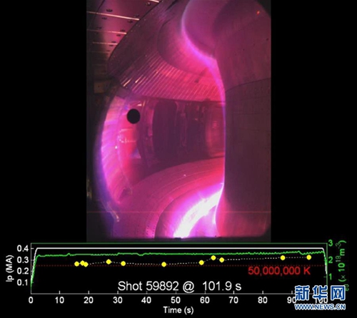 Ce dispositif de fusion, du nom de ? Tokamak supraconducteur avancé expérimental (Experimental Advanced Superconducting Tokamak, EAST) et surnommé ? soleil artificiel ?, a produit une décharge de plasma à impulsion d'une durée de 102 secondes à une température centrale d'électron supérieure à 50 millions de degrés à la fin de janvier 2016 à Hefei. C'est la plus longue période de décharge de plasma enregistrée dans tous les dispositifs de fusion Tokamak existant au monde.