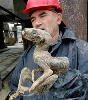 Les restes d'une étrange créature ont été découverts par des mineurs sibériens dans des sables diamantifères. Ce petit monstre momifié a été trouvé au c?ur d'une mine de diamants à ciel ouvert située juste à l'extérieur du cercle polaire arctique, dans la République de Sakha, dans le Nord de la Sibérie. Ce ? monstre ? manifestement très ancien pourrait remonter à une période située entre 252 et 66 millions d'années.
