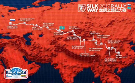 La cérémonie de départ du Rallye International de la Route de la Soie a eu lieu 7 juillet 2017 sur la Place Rouge de Moscou. Lors de ce rallye, 90 équipes de 35 pays et régions sont passées à travers la Russie et le Kazakhstan, et enfin la Chine, arrivant le 22 juillet à Xi'an.