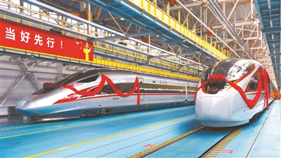 Le 25 juin, le train à grande vitesse de type EMU, développé sous la direction de la China Railway Corporation avec des droits de propriété intellectuelle complètement indépendants et qui a atteint un des niveaux les plus avancés du monde, est baptisé ? Fuxing ? (? Rajeunissement ?). Affichant une vitesse de conception de 400 km/h, le ? Fuxing ? atteint une vitesse standard de 350 km/h, permettant de relier Beijing à Shanghai en seulement 4,5 heures.