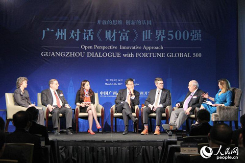 Des représentants de nombreuses grandes entreprises américaines dont General Electric et Goldman Sachs ont pu rencontrer des représentants de Guangzhou, pour un dialogue et un échange autour du thème ? Une pensée d'ouverture, un gène d'innovation ?.
