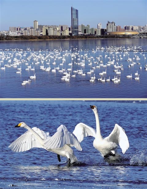 Sanmenxia attire un tiers des cygnes blancs qui migrent de la Sibérie pour passer l'hiver en Chine. La ville a fixé une période de protection allant de la fin du mois d'octobre au mois de mars pour ces précieux oiseaux.
