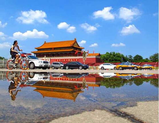 La place Tian'anmen sous un beau ciel bleu après qu'il ait plu le 17 ao?t 2017. (Le Quotidien du Peuple en ligne)