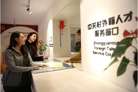 Le 20 septembre 2017, le guichet de service pour les talents étrangers de Zhongguancun a été ouvert dans le salon de l'Association pour la fondation d'entreprises de la rue Chuangye (? Fondation d'entreprises ?) de Zhongguancun, offrant une plate-forme de service efficace et un guichet unique de haute qualité pour les talents étrangers ayant l'esprit d'innovation et d'entreprise. (Source : z-innoway.com)
