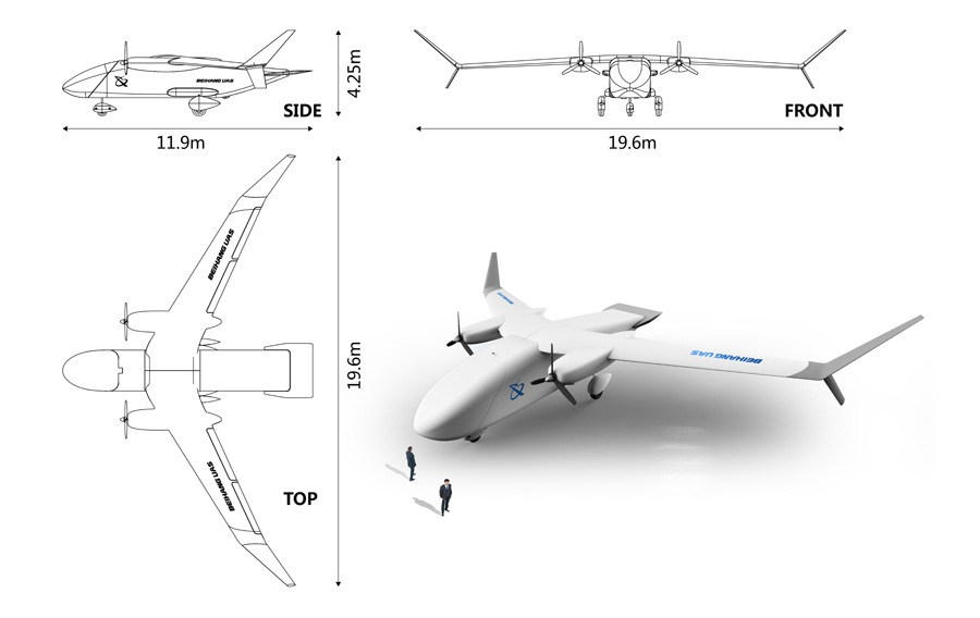 Il n'existe aucun drone civil produit en série qui soit aussi gros et aussi puissant que le modèle de Beihang. Plusieurs avions non-habités à énergie solaire ont une plus envergure plus longue, mais leur poids de loin inférieur au drone de Beihang et leur conception se résume à des démonstrations d'ordre technique.
