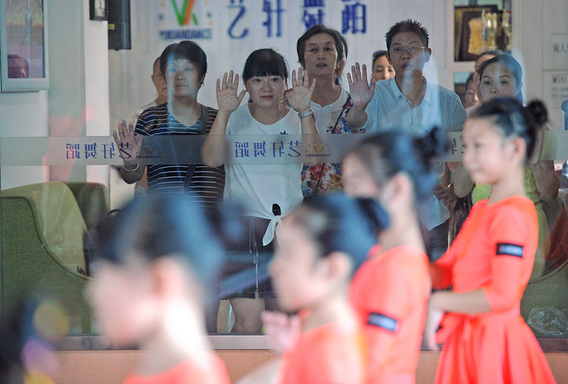 Des parents observent leurs enfants lors d'une séance de danse à Chengdu, capitale de la province du Sichuan, en juillet. (Xiao Yuyang / pour le China Daily)