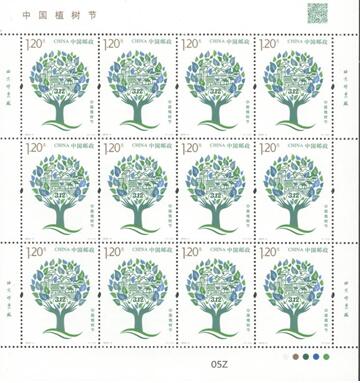 Le 11 mars ont eu lieu à Beijing les célébrations du 40e anniversaire de la Fête de l'Arbre de Chine et la première cérémonie de publication de timbres commémoratifs de cette journée. Le premier timbre commémoratif ? Journée de la plantation d'arbres de Chine ?, d'un modèle unique en planche, d'une valeur de 1,20 yuan, comporte deux mains représentées de manière abstraite pour former un tronc, les cinq doigts ouverts étant eux transformés en branches symbolisant les mains de chacun plantant et semant, ?uvrant ensemble pour améliorer l'environnement écologique de la Terre. La date de la Journée de l'arbre ? 3.12 ?, figure au-dessus des paumes des deux mains. Au-dessus du tronc, des feuilles d'un vert éclatant parsemées de villes et de villages, de rivières, de montagnes, d'oiseaux et de nuages blancs, symboles de la construction d'une belle Chine avec des montagnes et des collines verdoyantes grace au boisement. Les timbres sont imprimés avec des encres de couleur spéciales à base verte, montrant, sous une lumière ultraviolette, des paysages florissants mais aussi les mots ? 40 ? et ? Plantons des arbres et construisons une belle Chine ensemble ?.