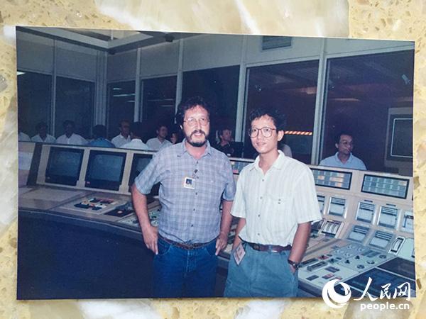 Zheng Weiping et son collègue lors de la première opération du réacteur à Daya Bay. (Photo : Zheng Weiping)