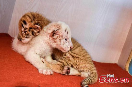 Les bébés tigres doré et blanc sont tous issus d'une sous-espèce du tigre du Bengale. Ils pèsent actuellement 1,3 kilo chacun.