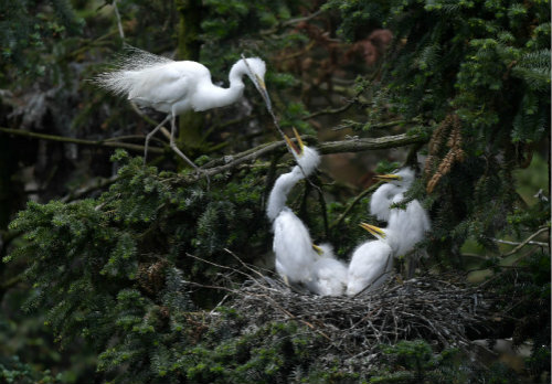 Les aigrettes nidifient le premier mois de leur arrivée au parc et élèvent les oisillons le mois suivant. Elles détruisent leur nid avant leur départ.