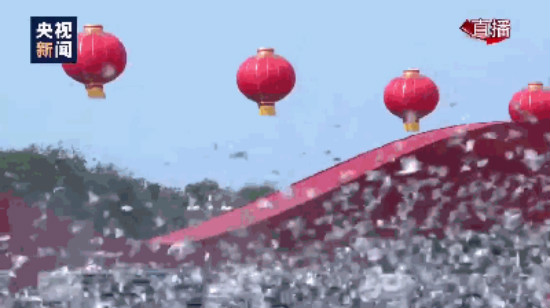 Les 70 000 pigeons qui ont été libérés ce jour-là ont été empruntés aux citoyens de Beijing. Les oiseaux ont été répartis en différents endroits de la place Tian'anmen selon les différentes directions des gens à qui ils appartenaient. Une fois que les pigeons ont été relachés, ils ont fait plusieurs fois le tour de la place, identifié leur direction, puis sont rentrés chez eux.