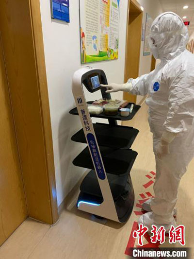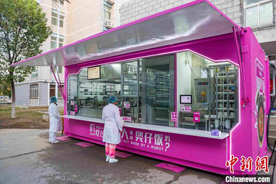Dans l'après-midi du 14 février, un robot cuiseur de riz en pot de terre cuite est apparu au point de quarantaine du Collège appartenant à l'état du Hubei. Après que le personnel du point de quarantaine a passé sa commande gratuitement en scannant le code, le bras robotique démarre et se déplace de haut en bas, et environ 15 secondes plus tard, un pot de riz chaud sort de la fenêtre de livraison de nourriture.