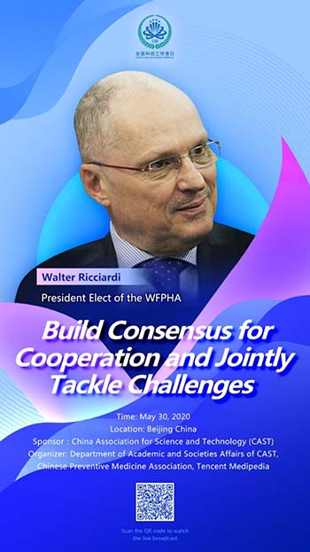 Le séminaire international ? le développement mondial de la science et de la gouvernance sous l'épidémie de nouveau coronavirus ? a eu lieu à Beijing le 30 mai 2020 après-midi (heure de Beijing). (adresse de la vidéo: http://v.people.cn/n1/2020/0525/c43911-31722913.html). Le séminaire a été organisé par l'Association chinoise pour la science et la technologie, sur le thème ? Condenser le consensus coopératif et relever ensemble les défis ?, en utilisant une combinaison de méthodes en ligne et hors ligne. Huai Jinpeng, le vice-président exécutif et secrétaire en chef de l'Association chinoise pour les sciences et technologies (CAST), membre de l'Académie chinoise des sciences, Mohamed Hassan, directeur de l'Institut de la science des pays en développement, Margaret Chan, directrice générale honoraire de l'Organisation mondiale de la santé et Walter Richardi, président élu de La Fédération mondiale de la santé publique ont assisté à la réunion et prononcé un discours.