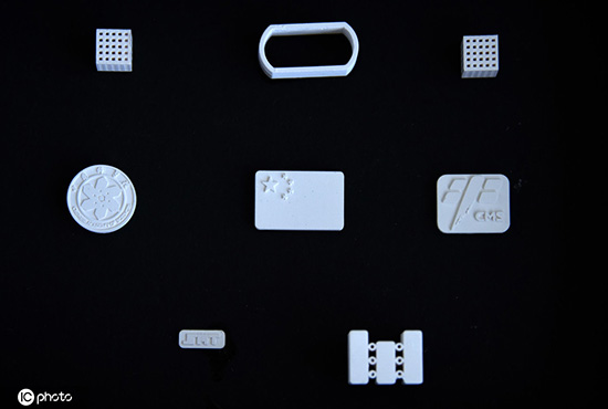 Au Laboratoire clé de technologie de fabrication spatiale de l'Académie chinoise des sciences du Centre d'ingénierie et de technologie des applications spatiales de l'Académie chinoise des sciences, les membres de l'équipe de recherche scientifique ont présenté 8 prototypes qui ont été fabriqués avec succès en utilisant l'impression 3D en stéréolithographie pendant le fonctionnement orbital de la nouvelle mission du vaisseau spatial.