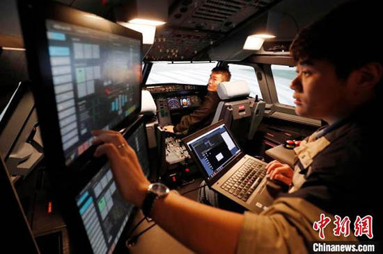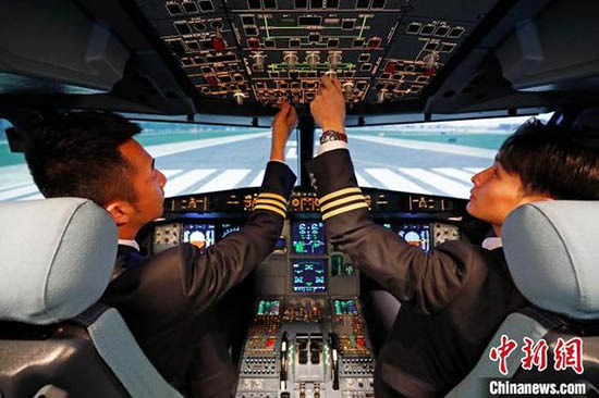 Des pilotes de la compagnie Juneyao Airlines s'entra?nent sur un simulateur de vol complet, le 22 octobre.