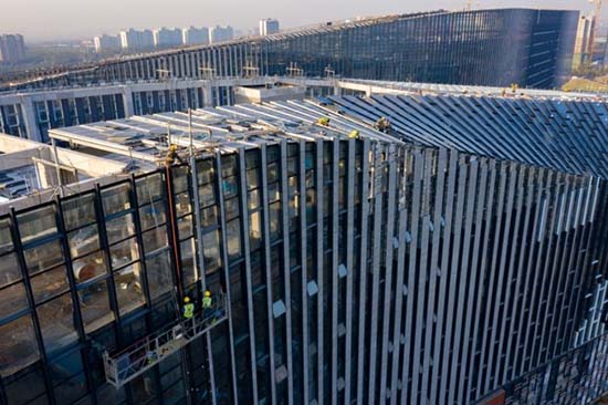 Le 9 novembre, des travailleurs travaillent sur le chantier de construction du Centre d'excellence d'information quantique et de physique quantique de l'Académie chinoise des sciences à Hefei de la province de l'Anhui (dans l'est de la Chine). (Ruan Xuefeng/Pic.people.com.cn)