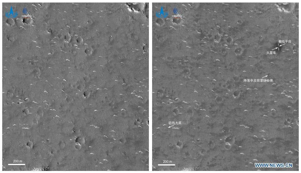 L'Administration nationale de l'espace de Chine a publié une nouvelle image capturée par la sonde Tianwen-1 montrant le premier rover martien du pays et sa plate-forme d'atterrissage à la surface de la planète rouge.