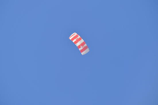 Photo montre le parachute de propulseur d'appoint de 300 mètres carrés lors du test (Photo / Xinhua)