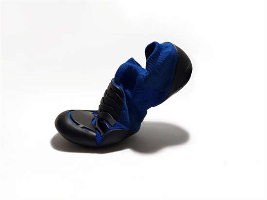 Tricotées avec des textiles spéciaux et des matériaux thermoplastiques, les chaussures bleues et noires sont respirantes, extrêmement élastiques et résistent à l'électricité statique. Des caractères chinois ont également été ajoutés sur les semelles des chaussures. écrits dans l'ancien style Zhuan - l'écriture sigillaire couramment utilisée il y a 2 000 ans en Chine - les caractères se lisent ? jiu tian lan yue ?, ce qui signifie ? attraper la lune dans le ciel le plus haut ?. Ces mots font partie d'un poème écrit par Li Bai, le célèbre poète de la dynastie Tang (618-907).