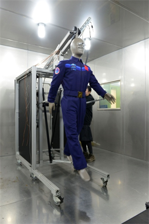 Des vêtements des ta?konautes pour travailler, s'entra?ner et vivre dans la station spatiale ont également été con?us à l'Université Donghua. Ils ont été teints avec différentes nuances de bleu pour symboliser le voyage du ciel dans l'espace, et une bande en forme de V sur leurs chemises représente la victoire, commémorant le succès de la mission spatiale habitée.