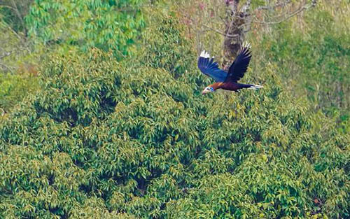 En mars dernier, quelques photographes d'écologie ont photographié 3 Calaos à cou roux dans les montagnes à 2 000 mètres d'altitude dans le comté de Yingjiang de la préfecture autonome dai et jingpo de Dehong de la province du Yunnan. Il s'agit d'un animal protégé de premier niveau national qui est inscrit à l'Annexe I de la Convention sur le commerce international des espèces de faune et de flore sauvages menacées d'extinction. C'était dans les années 1980 qu'il a été pris en photo pour la dernière fois.