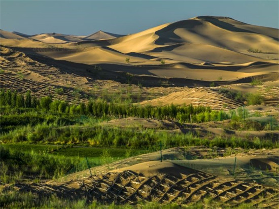 Le désert de Kubuqi au nord d'Ordos, dans la région autonome de Mongolie intérieure (nord de la Chine), est le 7e plus grand désert de la Chine. Autrefois appelée ? la mer de la mort ?, ce désert était considéré comme incontr?lable. Aujourd'hui, dans près d'un tiers du désert, la progression du désert a été freinée. L'être humain avance, alors que le désert recule maintenant. La biodiversité est restaurée progressivement, et l'environnement, largement amélioré. Les tempêtes de sable dans la région ont été réduites de 95% par rapport à il y a 20 ans.
