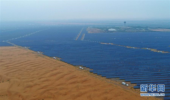 Photo prise le 31 ao?t montrant une centrale photovolta?que dans le parc industriel photovolta?que du désert, dans la ville de Zhongwei, dans la province du Ningxia. (Photo / Xinhua)