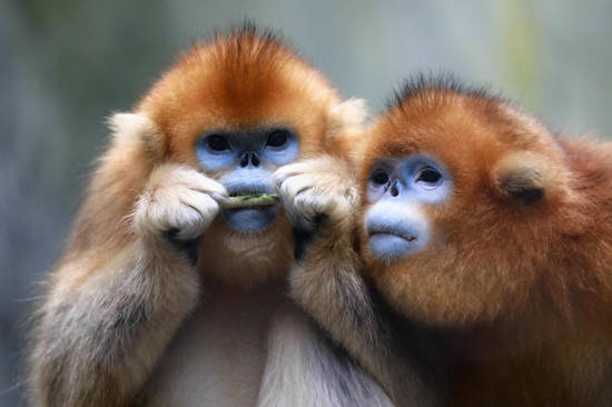 Le 4 octobre 2021, les rhinopithèques, animaux vivant dans les mêmes zones que des pandas géants, mènent une vie tranquille et confortable à la base de Hetaoping du centre de conservation et de recherche du panda géant dans la réserve naturelle de Wolong de la province du Sichuan (dans le sud-ouest de la Chine). (He Shengshan/Pic.people.com.cn)