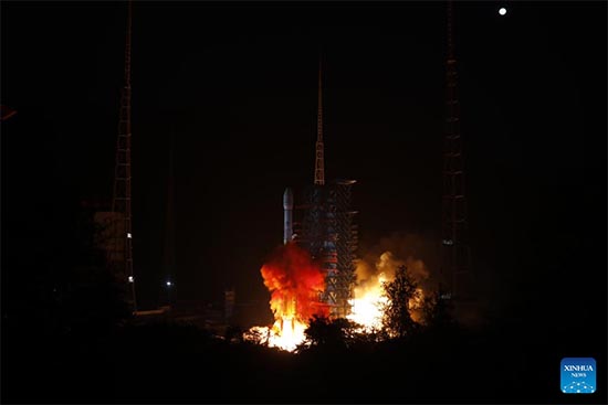 Une fusée porteuse Longue Marche-3B transportant le satellite de communication ChinaSat 6D décolle du Centre de lancement de satellites de Xichang, dans la province du Sichuan (sud-ouest de la Chine), le 15 avril 2022. (Photo / Xinhua)