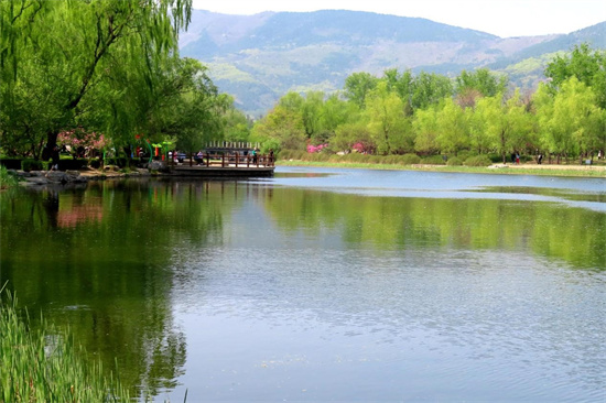 Le 18 avril 2022, des touristes visitent le jardin botanique national de Chine à Beijing. (He Luqi / Pic.people.com.cn)
