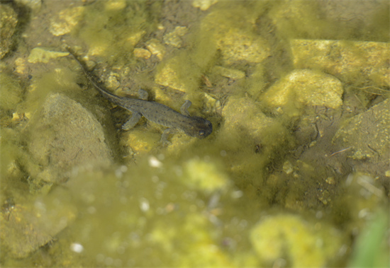 Photo prise le 28 juillet montrant une salamandre du Xinjiang (Ranodon sibiricus) dans une réserve naturelle nationale du comté de Wenquan, dans la région autonome ou?ghoure du Xinjiang (nord-ouest de la Chine). (Photo / Xinhua)