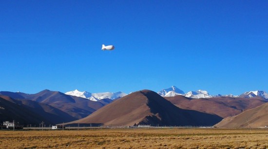 Le dirigeable "Jimu-1" n°3 pour la deuxième enquête scientifique chinoise sur le plateau Qinghai-Tibet a survolé le Mont Qomolangma. Le dirigeable a été équipé de multiples appareils pour mesurer et analyser des isotopes stables de l'eau, du carbone noir, du méthane et de l'ozone. (Photo fournie par l'Institut de recherche sur le plateau Qinghai-Tibet de l'Académie chinoise des sciences)