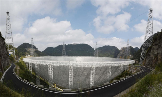 Le plus grand radiotélescope à ouverture unique au monde, le radiotélescope à ouverture sphérique de 500 m (FAST), situé dans la préfecture de Qiannan de la province du Guizhou (sud-ouest de la Chine). (Deng Gang / Pic.people.com.cn)