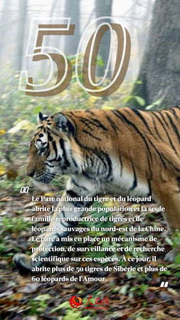 Le Parc national du tigre et du léopard abrite la plus grande population et la seule famille reproductrice de tigres et de léopards sauvages du nord-est de la Chine. Le parc a mis en place un mécanisme de protection, de surveillance et de recherche scientifique sur ces espèces. à ce jour, il abrite plus de 50 tigres de Sibérie et plus de 60 léopards de l'Amour.