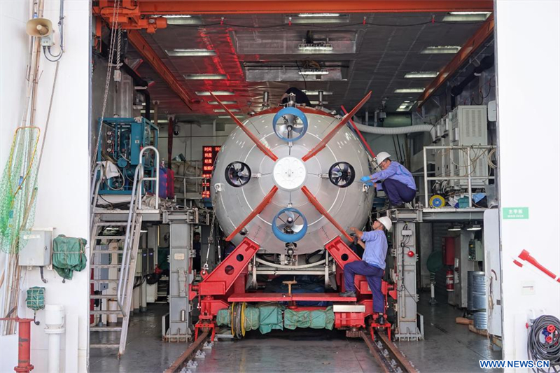 Le submersible est transporté par le navire de recherche chinois Deep Sea No. 1, qui compte à son bord des scientifiques chinois et étrangers, et qui a embarqué le 10 ao?t, à Qingdao, dans la province chinoise du Shandong (est).
